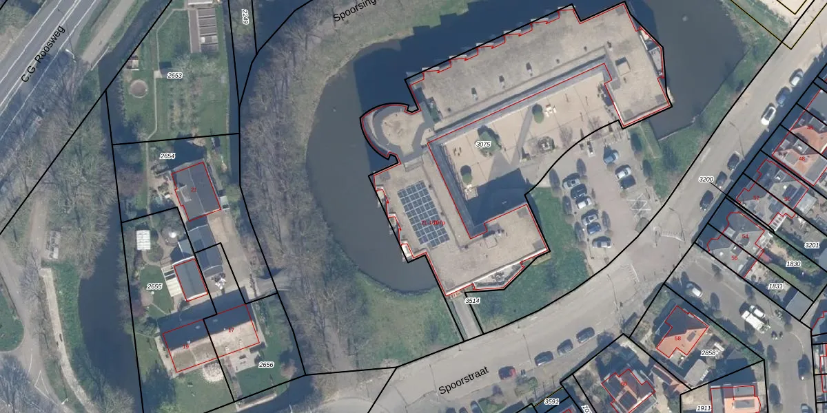 Het perceel waarop Spoorstraat 83 staat heeft een oppervlakte van 3040 m². Dit is een zeer groot perceel. De perceeloppervlakte wordt geregistreerd door het Kadaster. Gedetailleerde informatie over de maten van dit perceel kunt u vinden in het rapport Kadastrale kaart met maatvoering van Spoorstraat 83.