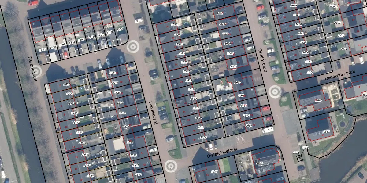 Gebruik de zoekbalk of klik op een perceel voor informatie over de adressen binnen dit perceel.