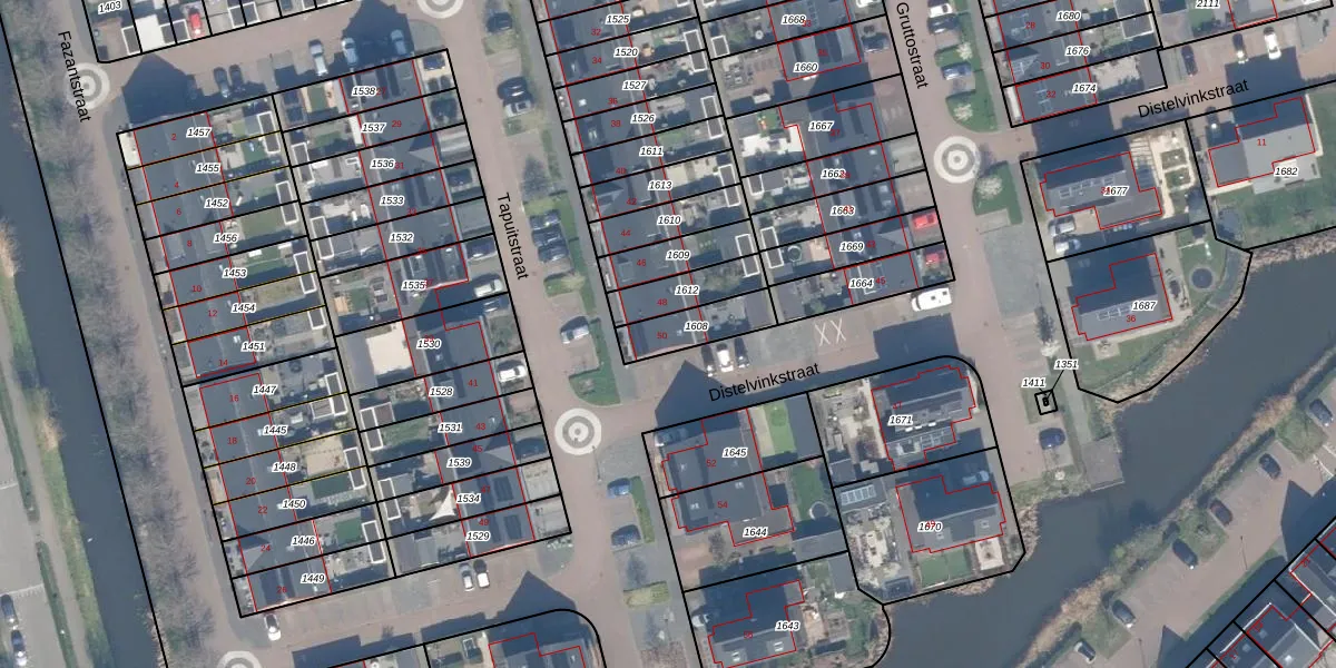 Tapuitstraat 50 is gelegen op kadastraal perceel SHV00E1608. Deze kadastrale aanduiding is uniek en wordt gebruikt door het Kadaster om eigendomsrechten en andere zakelijke rechten vast te leggen. Het perceel maakt onderdeel uit van de kadastrale gemeente Schoonhoven.