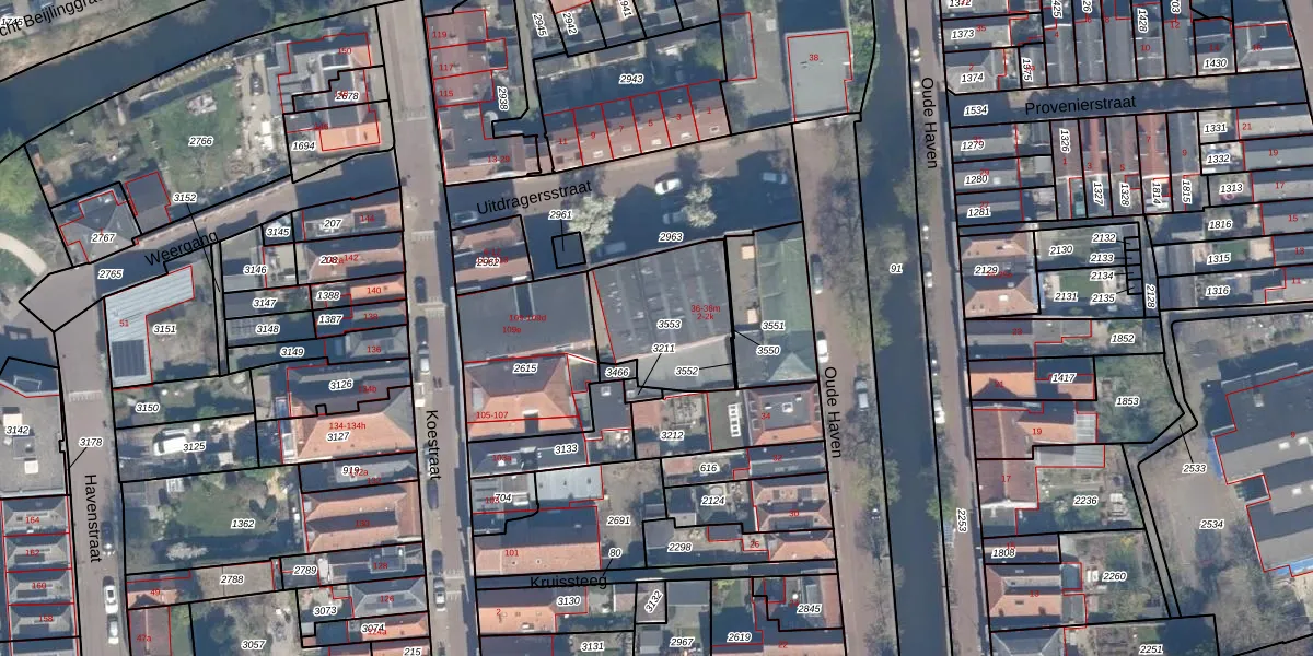 Uitdragersstraat 2-k is gelegen op kadastraal perceel SHV00C3553. Deze kadastrale aanduiding is uniek en wordt gebruikt door het Kadaster om eigendomsrechten en andere zakelijke rechten vast te leggen. Het perceel maakt onderdeel uit van de kadastrale gemeente Schoonhoven.