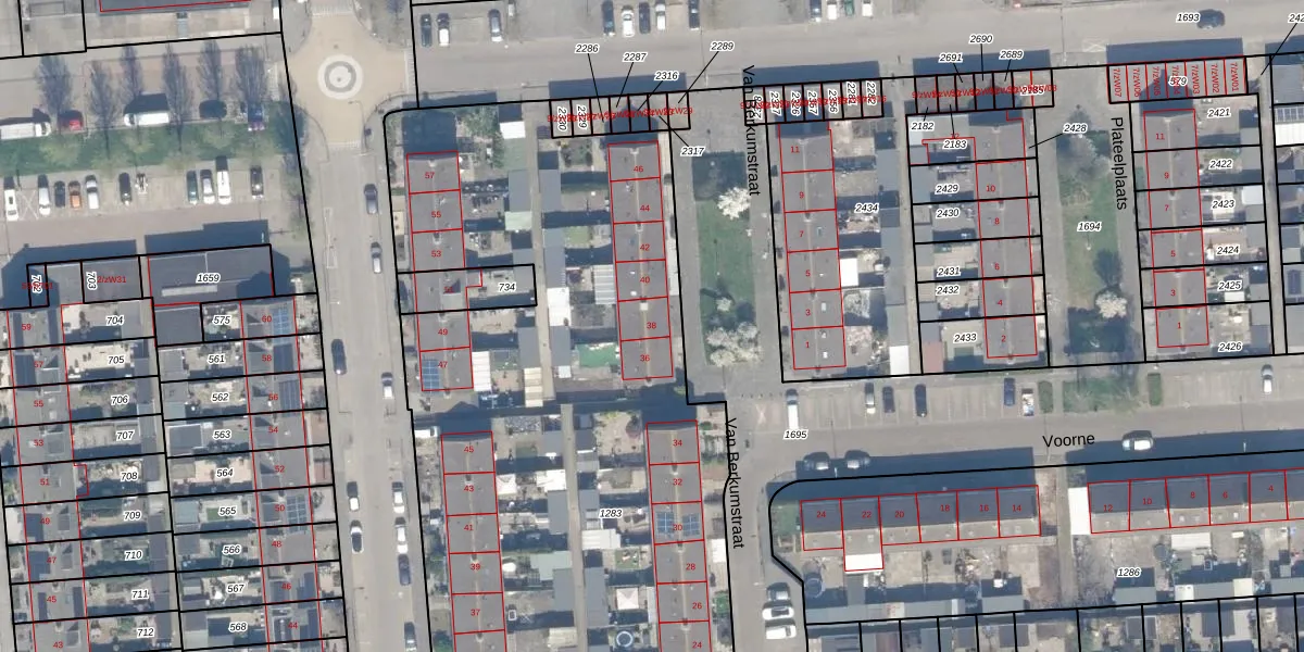 Het perceel waarop Van Berkumstraat 38 staat heeft een oppervlakte van 5015 m². Dit is een zeer groot perceel. De perceeloppervlakte wordt geregistreerd door het Kadaster. Gedetailleerde informatie over de maten van dit perceel kunt u vinden in het rapport Kadastrale kaart met maatvoering van Van Berkumstraat 38.