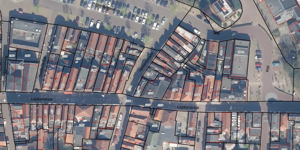 Het perceel waarop Varkensmarkt 5 staat heeft een oppervlakte van 64 m². Dit is een klein perceel. De perceeloppervlakte wordt geregistreerd door het Kadaster. Gedetailleerde informatie over de maten van dit perceel kunt u vinden in het rapport Kadastrale kaart met maatvoering van Varkensmarkt 5.