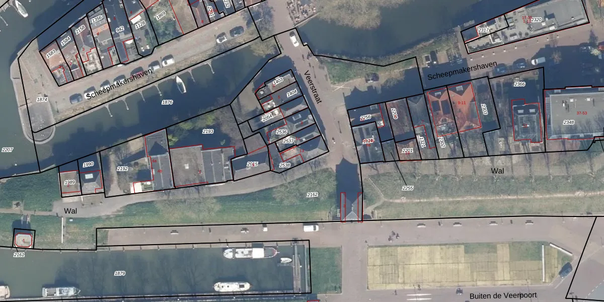 Veerstraat 13 is gelegen op kadastraal perceel SHV00B2538. Deze kadastrale aanduiding is uniek en wordt gebruikt door het Kadaster om eigendomsrechten en andere zakelijke rechten vast te leggen. Het perceel maakt onderdeel uit van de kadastrale gemeente Schoonhoven.