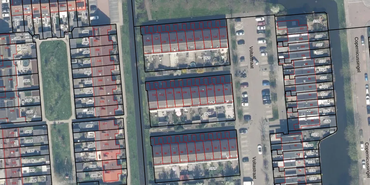 Voltastraat 106 is gelegen op kadastraal perceel SHV00A1524. Deze kadastrale aanduiding is uniek en wordt gebruikt door het Kadaster om eigendomsrechten en andere zakelijke rechten vast te leggen. Het perceel maakt onderdeel uit van de kadastrale gemeente Schoonhoven.