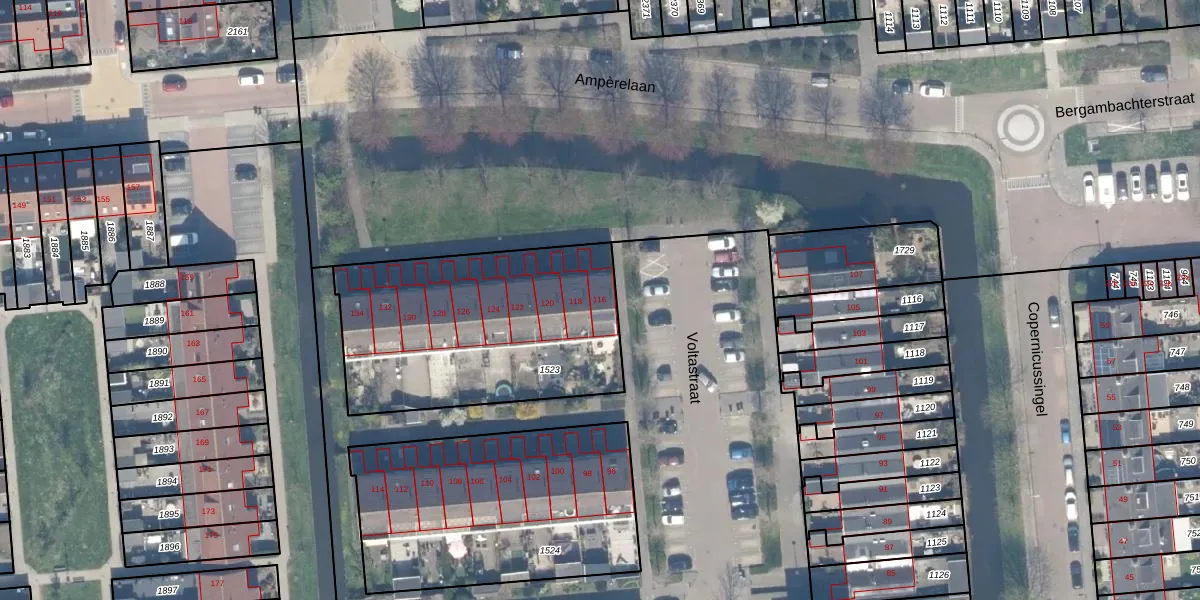 Het perceel waarop Voltastraat 116 staat heeft een oppervlakte van 1161 m². Dit is een zeer groot perceel. De perceeloppervlakte wordt geregistreerd door het Kadaster. Gedetailleerde informatie over de maten van dit perceel kunt u vinden in het rapport Kadastrale kaart met maatvoering van Voltastraat 116.