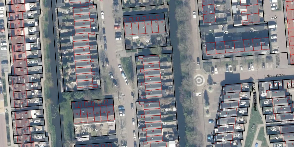 Het perceel waarop Voltastraat 27 staat heeft een oppervlakte van 1966 m². Dit is een zeer groot perceel. De perceeloppervlakte wordt geregistreerd door het Kadaster. Gedetailleerde informatie over de maten van dit perceel kunt u vinden in het rapport Kadastrale kaart met maatvoering van Voltastraat 27.