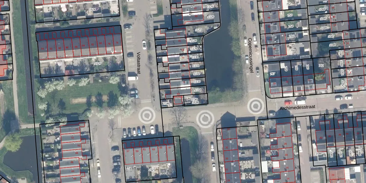 Gebruik de zoekbalk of klik op een perceel voor informatie over de adressen binnen dit perceel.