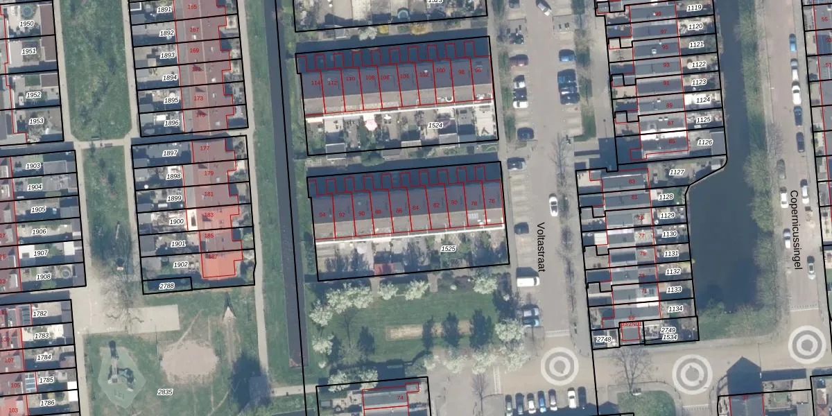 Het perceel waarop Voltastraat 84 staat heeft een oppervlakte van 1149 m². Dit is een zeer groot perceel. De perceeloppervlakte wordt geregistreerd door het Kadaster. Gedetailleerde informatie over de maten van dit perceel kunt u vinden in het rapport Kadastrale kaart met maatvoering van Voltastraat 84.