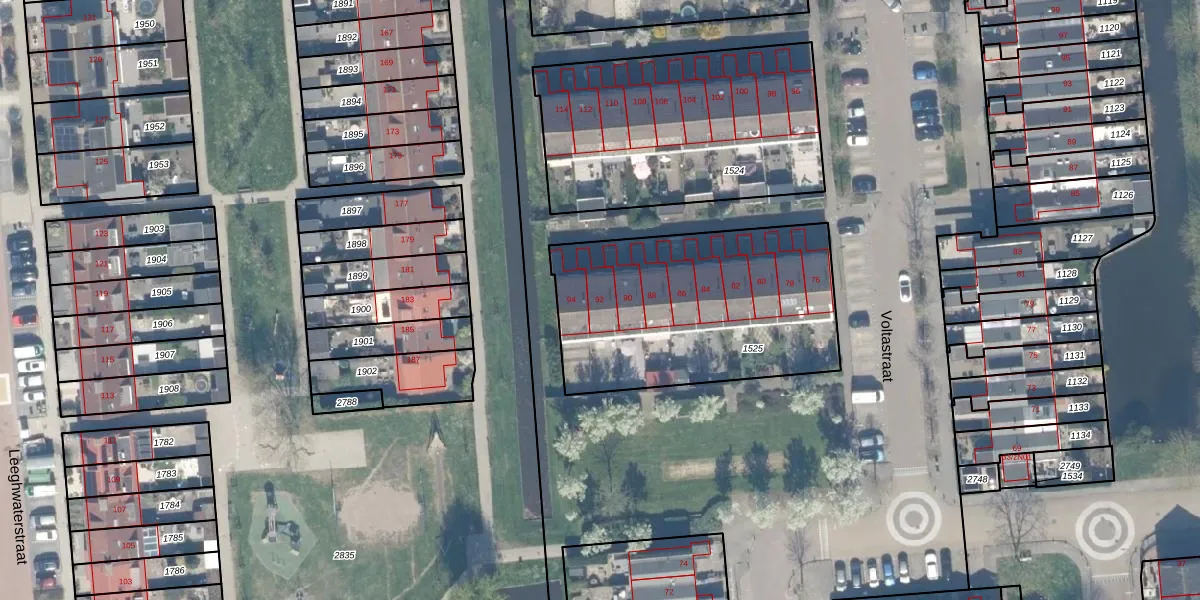 Het perceel waarop Voltastraat 92 staat heeft een oppervlakte van 1149 m². Dit is een zeer groot perceel. De perceeloppervlakte wordt geregistreerd door het Kadaster. Gedetailleerde informatie over de maten van dit perceel kunt u vinden in het rapport Kadastrale kaart met maatvoering van Voltastraat 92.