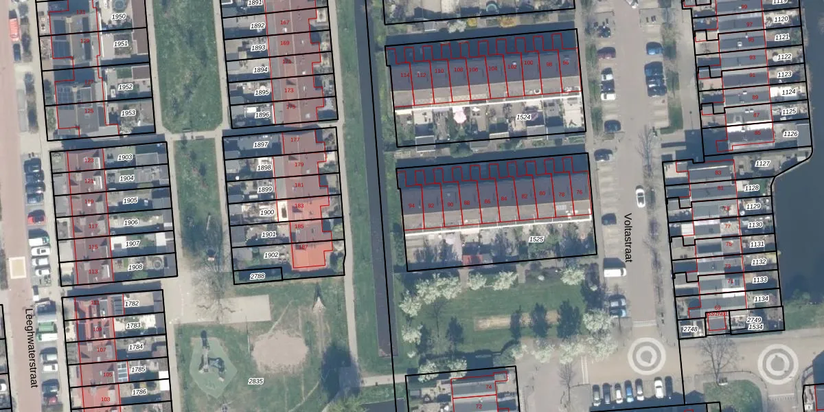 Het perceel waarop Voltastraat 94 staat heeft een oppervlakte van 1149 m². Dit is een zeer groot perceel. De perceeloppervlakte wordt geregistreerd door het Kadaster. Gedetailleerde informatie over de maten van dit perceel kunt u vinden in het rapport Kadastrale kaart met maatvoering van Voltastraat 94.