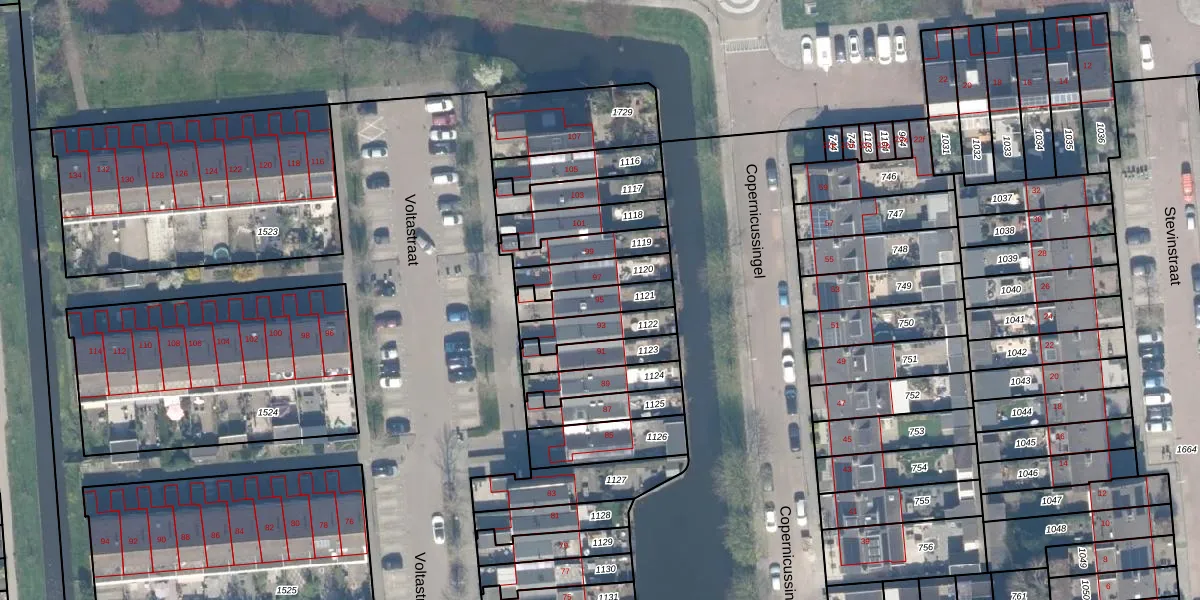 Gebruik de zoekbalk of klik op een perceel voor informatie over de adressen binnen dit perceel.