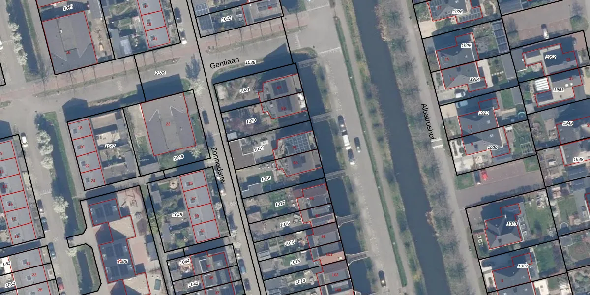 Gebruik de zoekbalk of klik op een perceel voor informatie over de adressen binnen dit perceel.