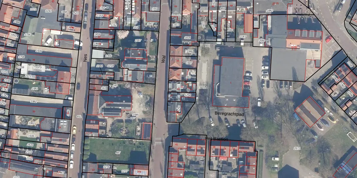 Het perceel waarop Wal 49 staat heeft een oppervlakte van 97 m². Dit is een klein perceel. De perceeloppervlakte wordt geregistreerd door het Kadaster. Gedetailleerde informatie over de maten van dit perceel kunt u vinden in het rapport Kadastrale kaart met maatvoering van Wal 49.