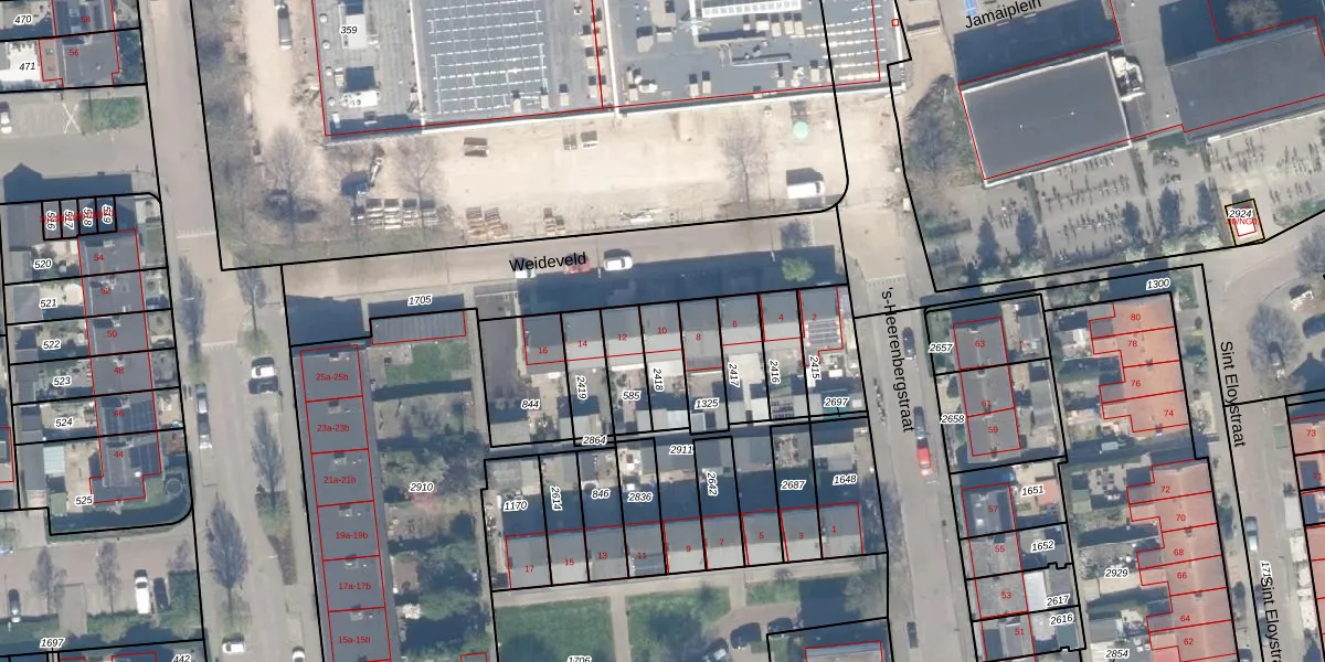 Gebruik de zoekbalk of klik op een perceel voor informatie over de adressen binnen dit perceel.