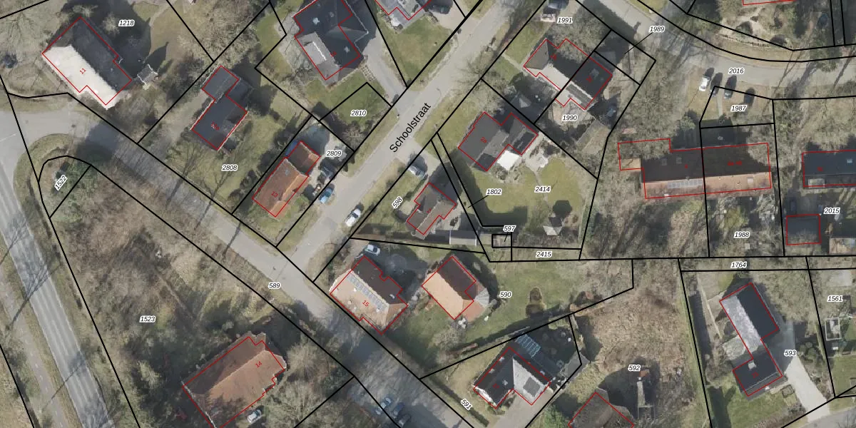 Het perceel waarop Schoolstraat 2 staat heeft een oppervlakte van 390 m². Dit is een groot perceel. De perceeloppervlakte wordt geregistreerd door het Kadaster. Gedetailleerde informatie over de maten van dit perceel kunt u vinden in het rapport Kadastrale kaart met maatvoering van Schoolstraat 2.