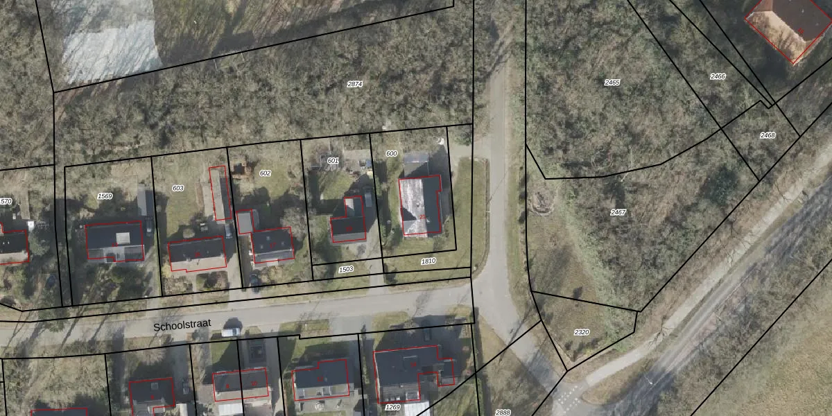 Het perceel waarop Schoolstraat 21 staat heeft een oppervlakte van 550 m². Dit is een groot perceel. De perceeloppervlakte wordt geregistreerd door het Kadaster. Gedetailleerde informatie over de maten van dit perceel kunt u vinden in het rapport Kadastrale kaart met maatvoering van Schoolstraat 21.