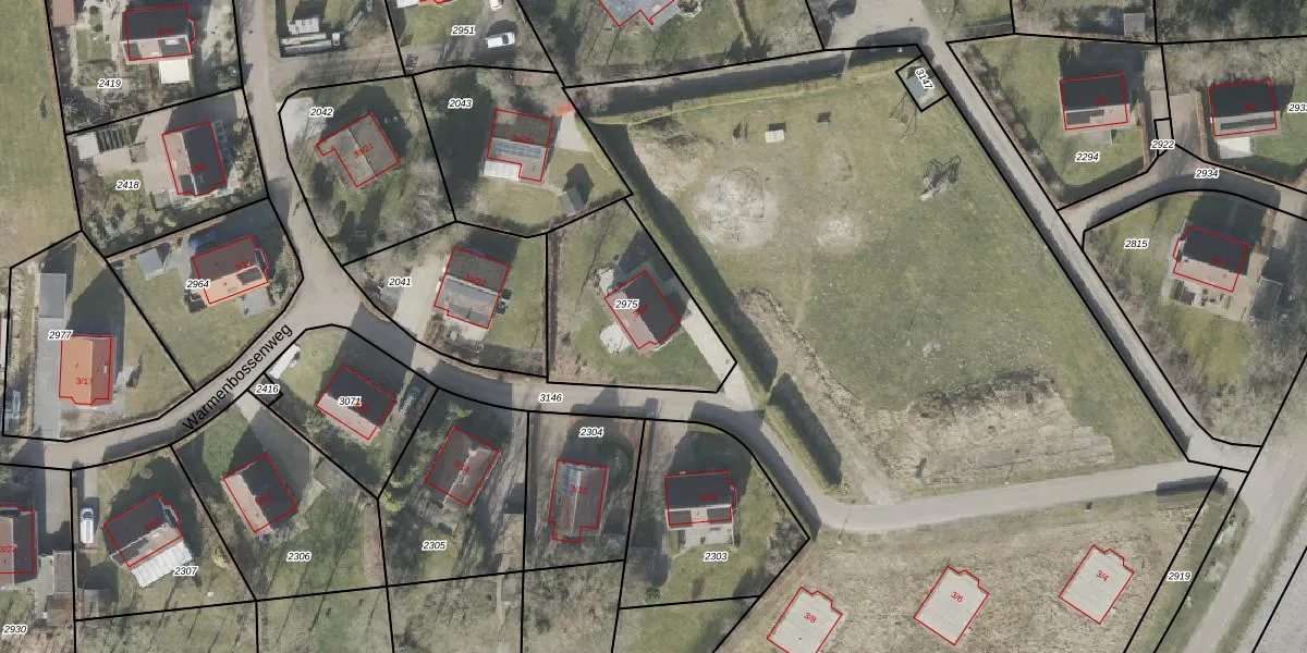Warmenbossenweg 3-64 is gelegen op kadastraal perceel RDE00T2975. Deze kadastrale aanduiding is uniek en wordt gebruikt door het Kadaster om eigendomsrechten en andere zakelijke rechten vast te leggen. Het perceel maakt onderdeel uit van de kadastrale gemeente Rolde.
