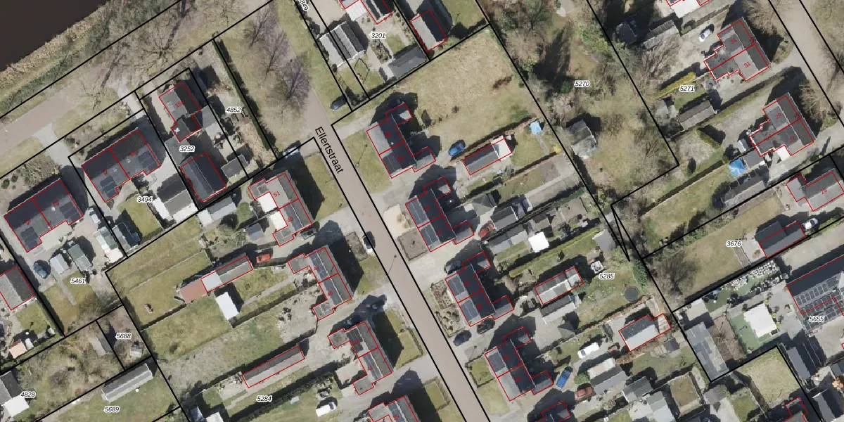 Het perceel waarop Ellertstraat 44 staat heeft een oppervlakte van 7165 m². Dit is een zeer groot perceel. De perceeloppervlakte wordt geregistreerd door het Kadaster. Gedetailleerde informatie over de maten van dit perceel kunt u vinden in het rapport Kadastrale kaart met maatvoering van Ellertstraat 44.