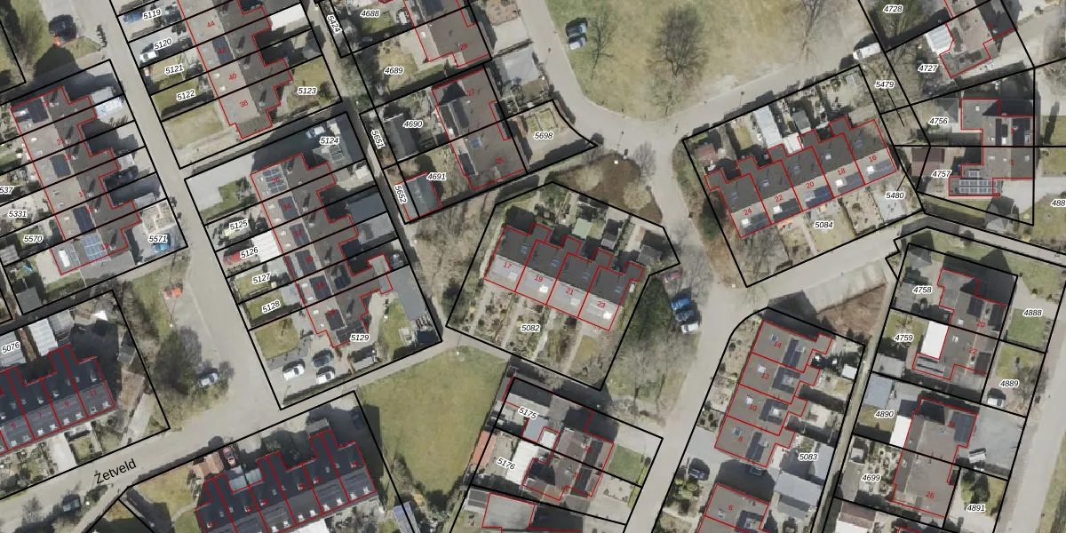 Het perceel waarop Juttestraat 19 staat heeft een oppervlakte van 1020 m². Dit is een zeer groot perceel. De perceeloppervlakte wordt geregistreerd door het Kadaster. Gedetailleerde informatie over de maten van dit perceel kunt u vinden in het rapport Kadastrale kaart met maatvoering van Juttestraat 19.
