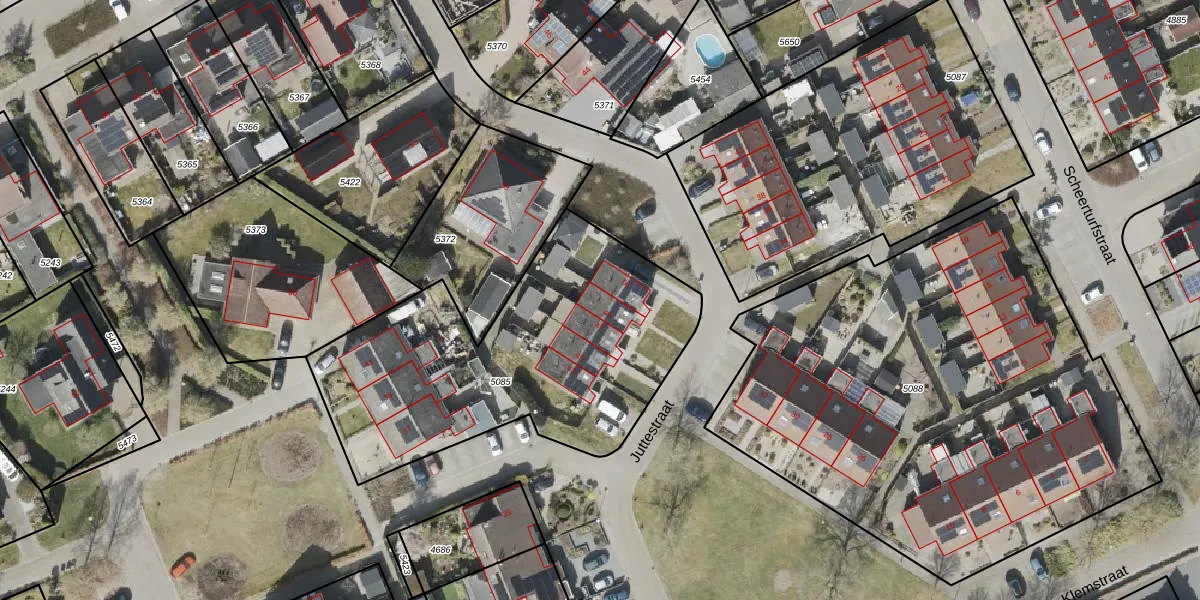 Het perceel waarop Juttestraat 49 staat heeft een oppervlakte van 1600 m². Dit is een zeer groot perceel. De perceeloppervlakte wordt geregistreerd door het Kadaster. Gedetailleerde informatie over de maten van dit perceel kunt u vinden in het rapport Kadastrale kaart met maatvoering van Juttestraat 49.
