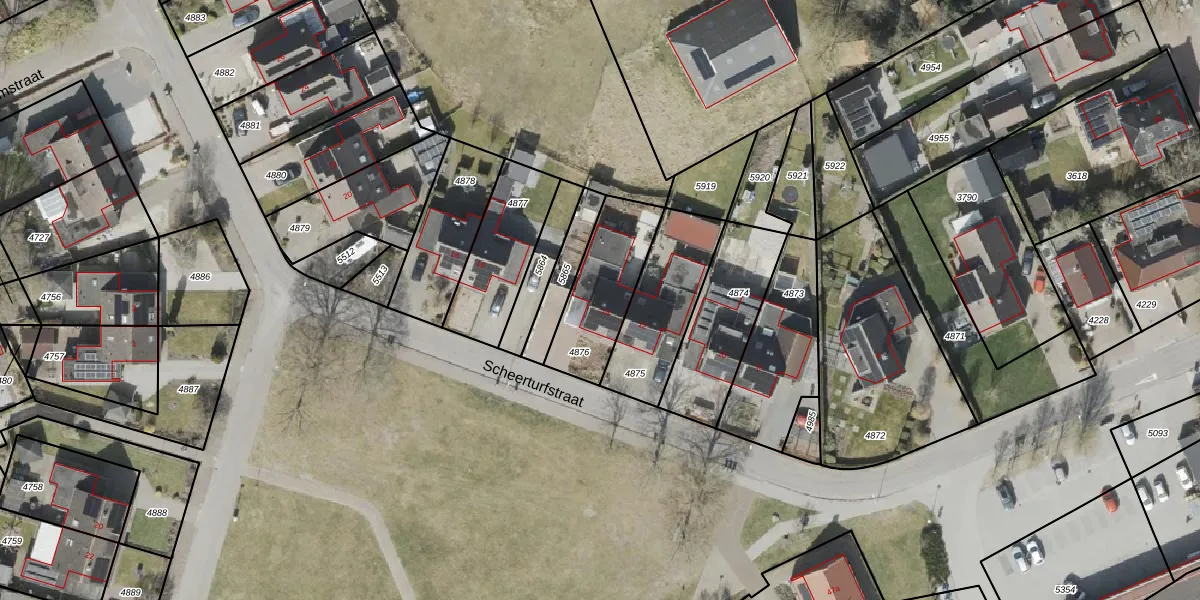 Scheerturfstraat 14 is gelegen op kadastraal perceel SLE00A4876. Deze kadastrale aanduiding is uniek en wordt gebruikt door het Kadaster om eigendomsrechten en andere zakelijke rechten vast te leggen. Het perceel maakt onderdeel uit van de kadastrale gemeente Sleen.
