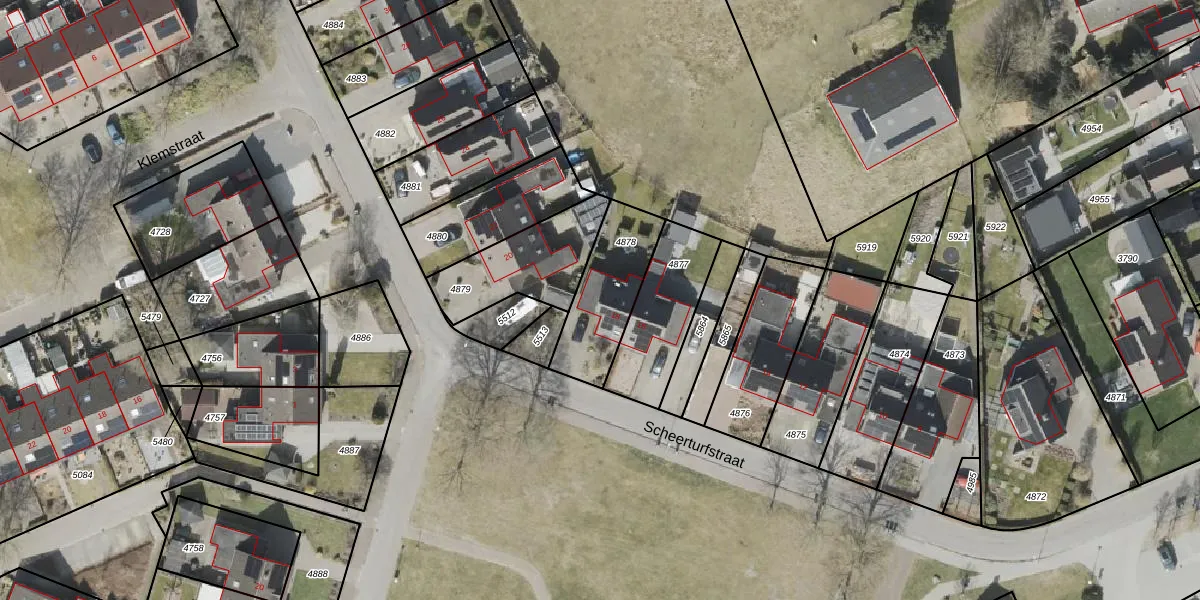 Gebruik de zoekbalk of klik op een perceel voor informatie over de adressen binnen dit perceel.