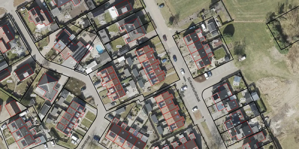 Het perceel waarop Scheerturfstraat 23 staat heeft een oppervlakte van 1635 m². Dit is een zeer groot perceel. De perceeloppervlakte wordt geregistreerd door het Kadaster. Gedetailleerde informatie over de maten van dit perceel kunt u vinden in het rapport Kadastrale kaart met maatvoering van Scheerturfstraat 23.