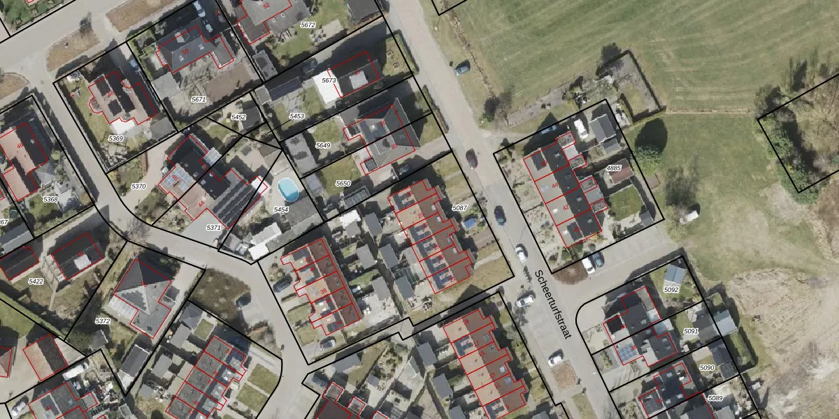 Het perceel waarop Scheerturfstraat 29 staat heeft een oppervlakte van 1635 m². Dit is een zeer groot perceel. De perceeloppervlakte wordt geregistreerd door het Kadaster. Gedetailleerde informatie over de maten van dit perceel kunt u vinden in het rapport Kadastrale kaart met maatvoering van Scheerturfstraat 29.