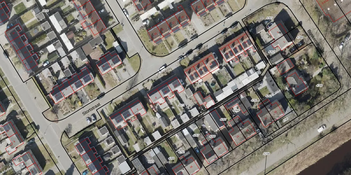 Het perceel waarop Stortstraat 12 staat heeft een oppervlakte van 4075 m². Dit is een zeer groot perceel. De perceeloppervlakte wordt geregistreerd door het Kadaster. Gedetailleerde informatie over de maten van dit perceel kunt u vinden in het rapport Kadastrale kaart met maatvoering van Stortstraat 12.