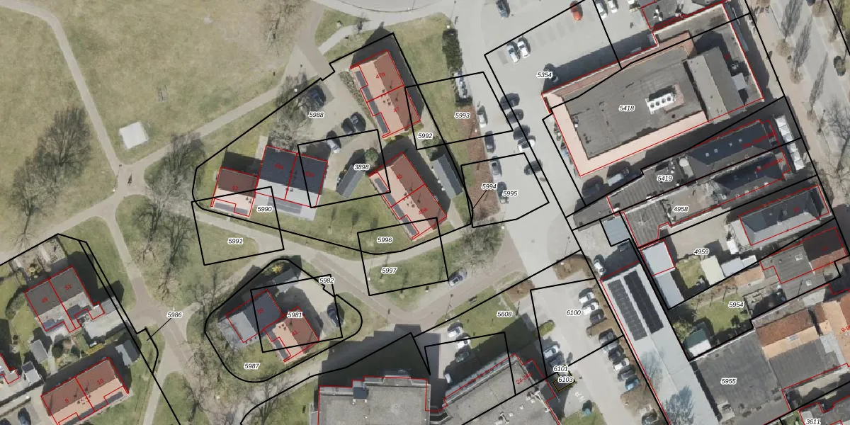 Het adres is gelegen op perceel 5988 in de sectie A en de kadastrale gemeente Sleen. De kadastrale aanduiding is aldus SLE00-A-5988. Het perceel is 1431 m² groot. Dat is kleiner dan de gemiddelde perceeloppervlakte in Sleen, dat op 1,1 ha ligt. Het grootste perceel in de kadastrale gemeente is 2,51 km². Het kleinste perceel heeft een oppervlakte van 1 m². Op het perceel zijn 6 adressen aanwezig. De huidige grenzen van het perceel zijn digitaal in de Basisregistratie Kadaster (BRK) geregistreerd op 22-01-2020.