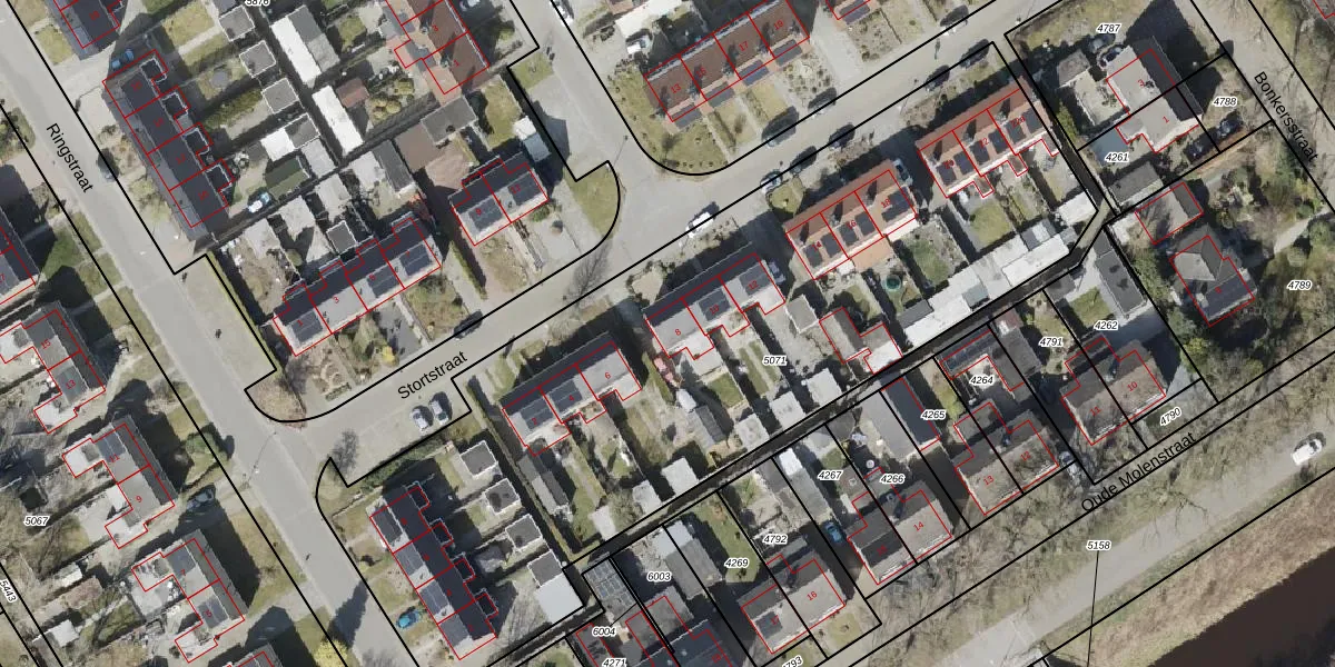 Het perceel waarop Stortstraat 8 staat heeft een oppervlakte van 4075 m². Dit is een zeer groot perceel. De perceeloppervlakte wordt geregistreerd door het Kadaster. Gedetailleerde informatie over de maten van dit perceel kunt u vinden in het rapport Kadastrale kaart met maatvoering van Stortstraat 8.
