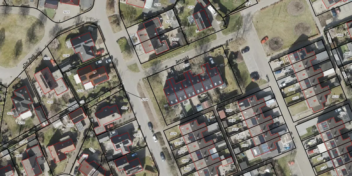 Zetveld 45 is gelegen op kadastraal perceel SLE00A5078. Deze kadastrale aanduiding is uniek en wordt gebruikt door het Kadaster om eigendomsrechten en andere zakelijke rechten vast te leggen. Het perceel maakt onderdeel uit van de kadastrale gemeente Sleen.