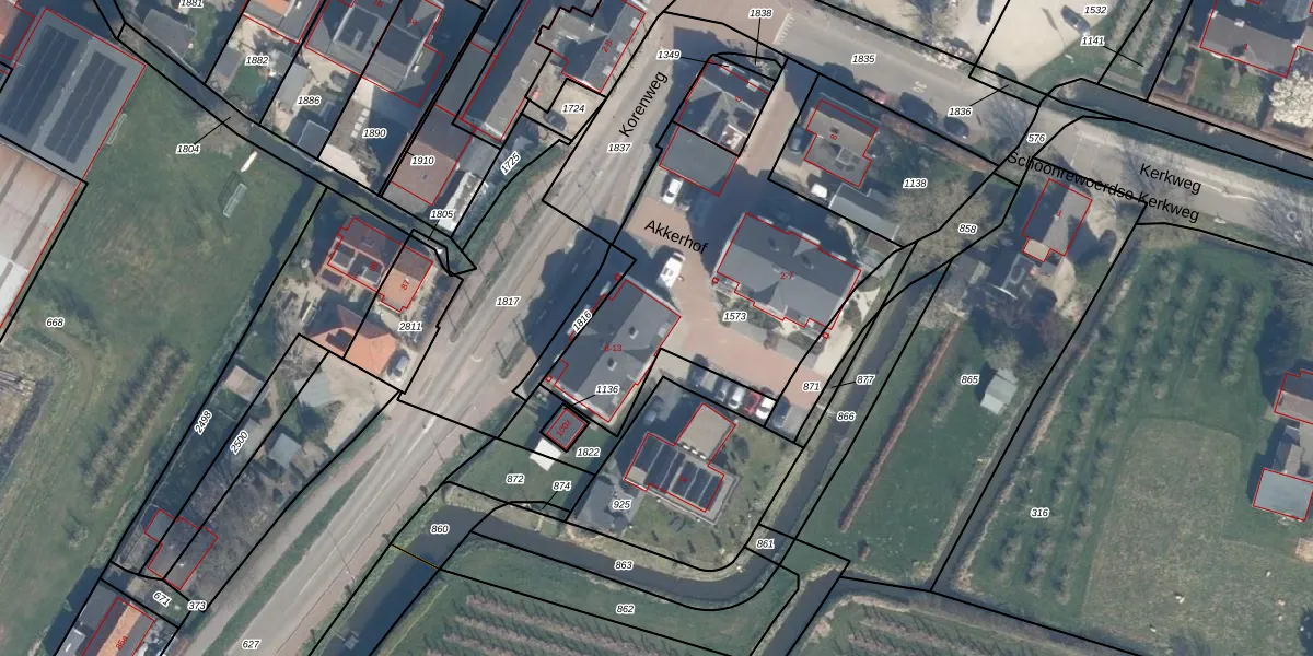 Het perceel waarop Akkerhof 9 staat heeft een oppervlakte van 1328 m². Dit is een zeer groot perceel. De perceeloppervlakte wordt geregistreerd door het Kadaster. Gedetailleerde informatie over de maten van dit perceel kunt u vinden in het rapport Kadastrale kaart met maatvoering van Akkerhof 9.