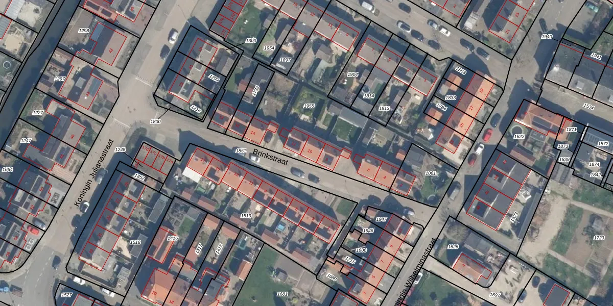 Het perceel waarop Brinkstraat 10 staat heeft een oppervlakte van 2562 m². Dit is een zeer groot perceel. De perceeloppervlakte wordt geregistreerd door het Kadaster. Gedetailleerde informatie over de maten van dit perceel kunt u vinden in het rapport Kadastrale kaart met maatvoering van Brinkstraat 10.