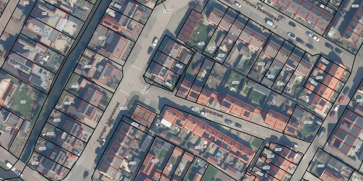 Het perceel waarop Brinkstraat 18 staat heeft een oppervlakte van 2562 m². Dit is een zeer groot perceel. De perceeloppervlakte wordt geregistreerd door het Kadaster. Gedetailleerde informatie over de maten van dit perceel kunt u vinden in het rapport Kadastrale kaart met maatvoering van Brinkstraat 18.