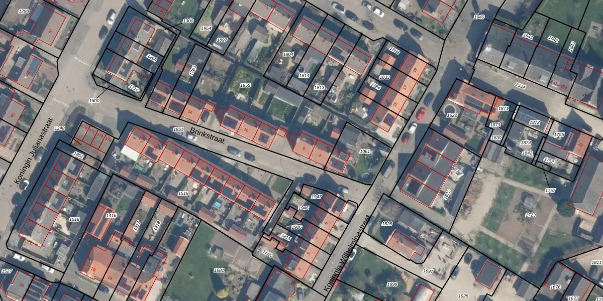 Het perceel waarop Brinkstraat 6 staat heeft een oppervlakte van 2562 m². Dit is een zeer groot perceel. De perceeloppervlakte wordt geregistreerd door het Kadaster. Gedetailleerde informatie over de maten van dit perceel kunt u vinden in het rapport Kadastrale kaart met maatvoering van Brinkstraat 6.