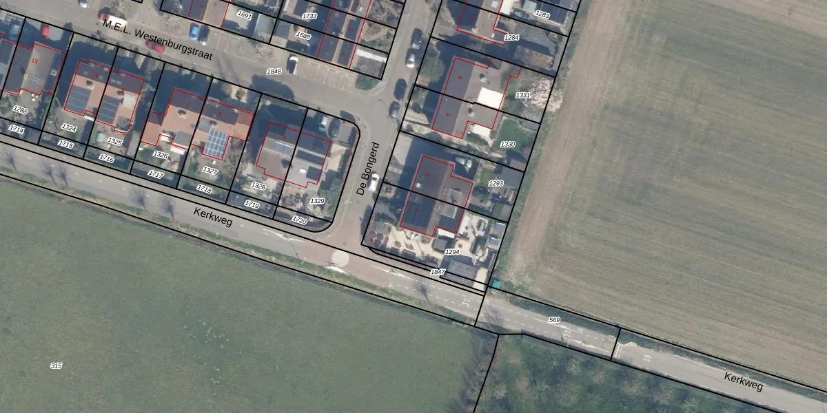 Het perceel waarop De Bongerd 2 staat heeft een oppervlakte van 508 m². Dit is een groot perceel. De perceeloppervlakte wordt geregistreerd door het Kadaster. Gedetailleerde informatie over de maten van dit perceel kunt u vinden in het rapport Kadastrale kaart met maatvoering van De Bongerd 2.