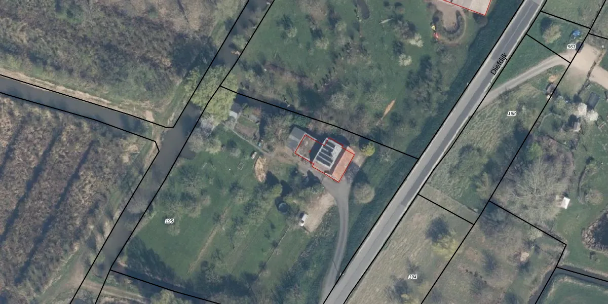 Het perceel waarop Diefdijk 8 staat heeft een oppervlakte van 4635 m². Dit is een zeer groot perceel. De perceeloppervlakte wordt geregistreerd door het Kadaster. Gedetailleerde informatie over de maten van dit perceel kunt u vinden in het rapport Kadastrale kaart met maatvoering van Diefdijk 8.