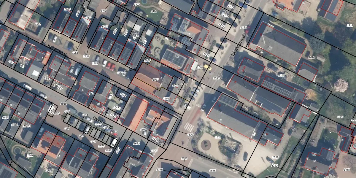 Het perceel waarop Dorpsstraat 9 staat heeft een oppervlakte van 59 m². Dit is een klein perceel. De perceeloppervlakte wordt geregistreerd door het Kadaster. Gedetailleerde informatie over de maten van dit perceel kunt u vinden in het rapport Kadastrale kaart met maatvoering van Dorpsstraat 9.