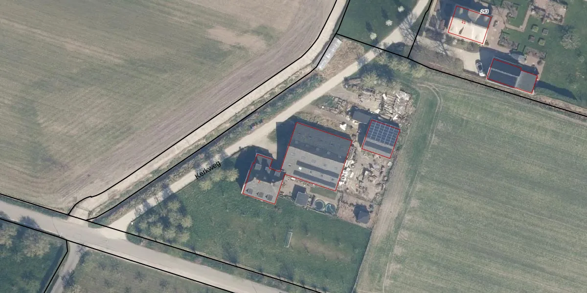 Het perceel waarop Kerkweg 7 staat heeft een oppervlakte van 2,4 ha. Dit is een zeer groot perceel. De perceeloppervlakte wordt geregistreerd door het Kadaster. Gedetailleerde informatie over de maten van dit perceel kunt u vinden in het rapport Kadastrale kaart met maatvoering van Kerkweg 7.