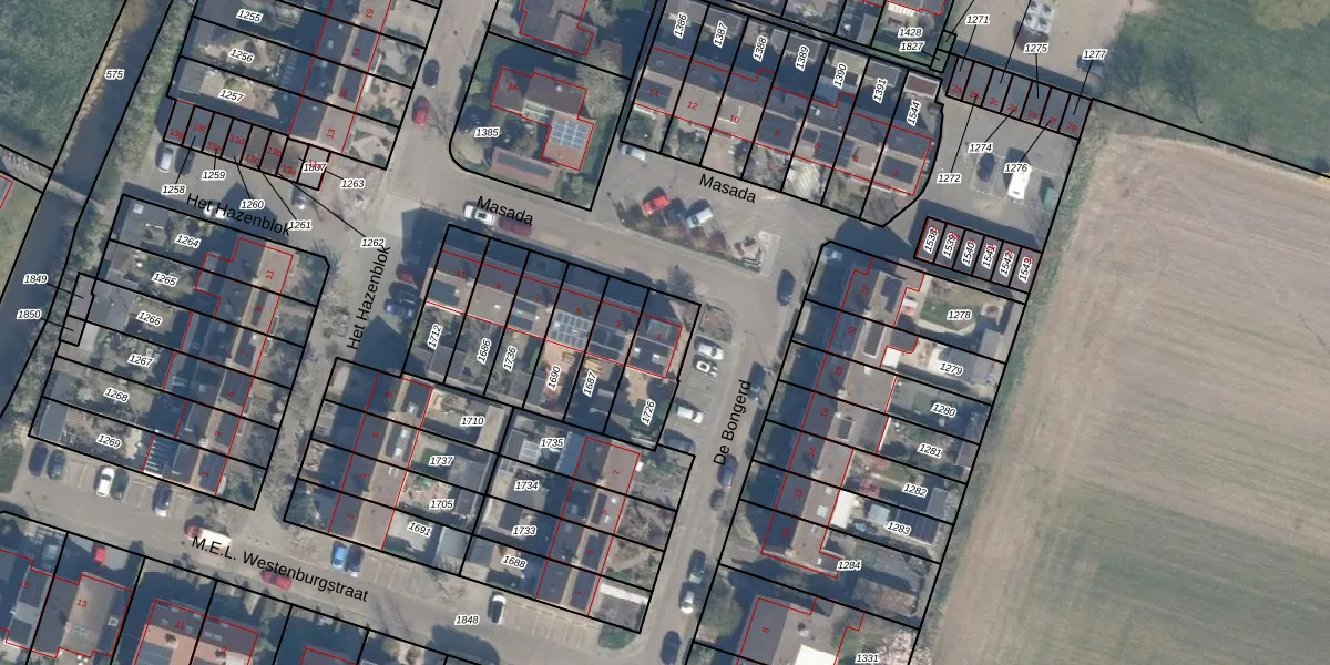 Het perceel waarop Masada 1 staat heeft een oppervlakte van 192 m². Dit is een middelgroot perceel. De perceeloppervlakte wordt geregistreerd door het Kadaster. Gedetailleerde informatie over de maten van dit perceel kunt u vinden in het rapport Kadastrale kaart met maatvoering van Masada 1.
