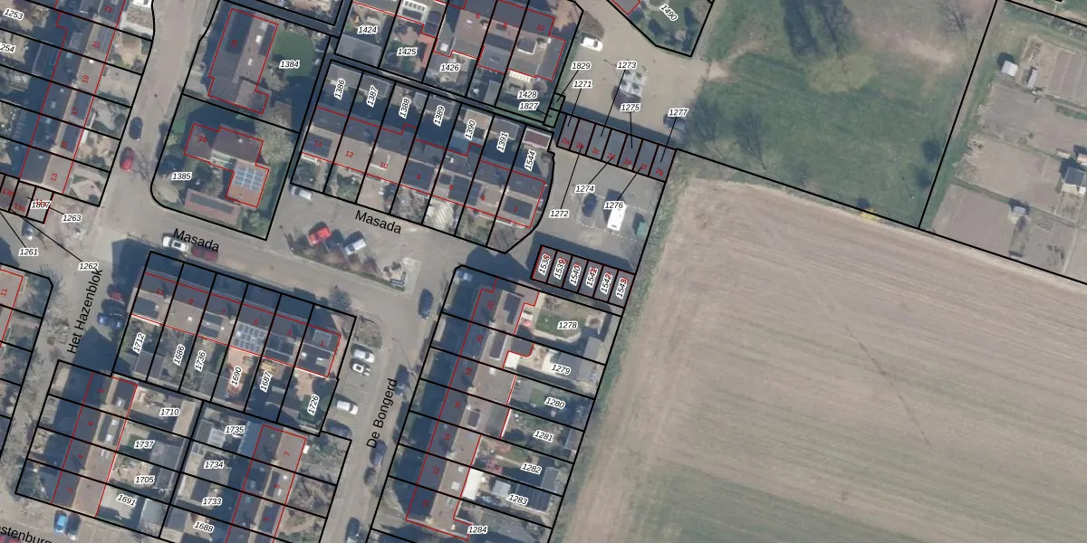 Het perceel waarop Masada 2-n staat heeft een oppervlakte van 19 m². Dit is een klein perceel. De perceeloppervlakte wordt geregistreerd door het Kadaster. Gedetailleerde informatie over de maten van dit perceel kunt u vinden in het rapport Kadastrale kaart met maatvoering van Masada 2-n.