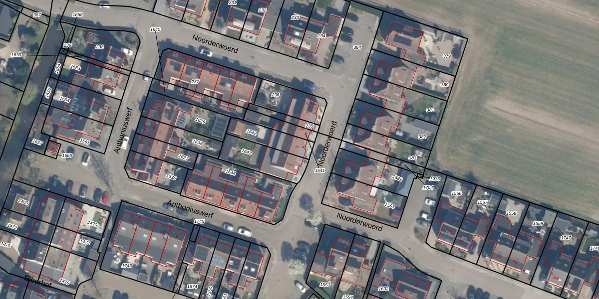 Het perceel waarop Noorderwoerd 3 staat heeft een oppervlakte van 174 m². Dit is een middelgroot perceel. De perceeloppervlakte wordt geregistreerd door het Kadaster. Gedetailleerde informatie over de maten van dit perceel kunt u vinden in het rapport Kadastrale kaart met maatvoering van Noorderwoerd 3.