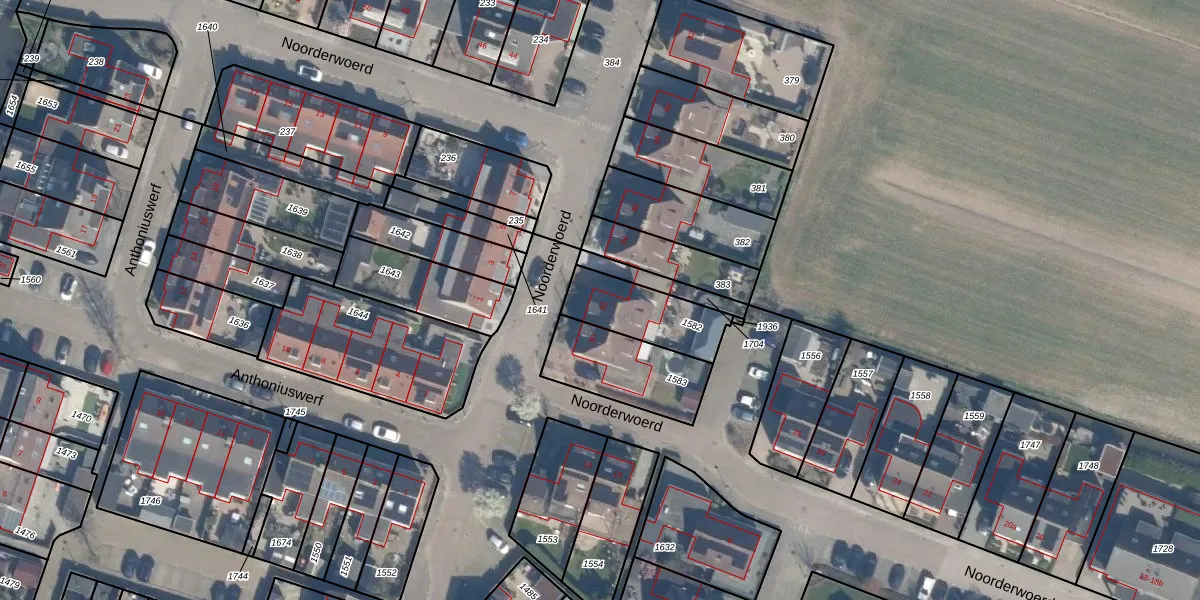 Het perceel waarop Noorderwoerd 32 staat heeft een oppervlakte van 235 m². Dit is een middelgroot perceel. De perceeloppervlakte wordt geregistreerd door het Kadaster. Gedetailleerde informatie over de maten van dit perceel kunt u vinden in het rapport Kadastrale kaart met maatvoering van Noorderwoerd 32.