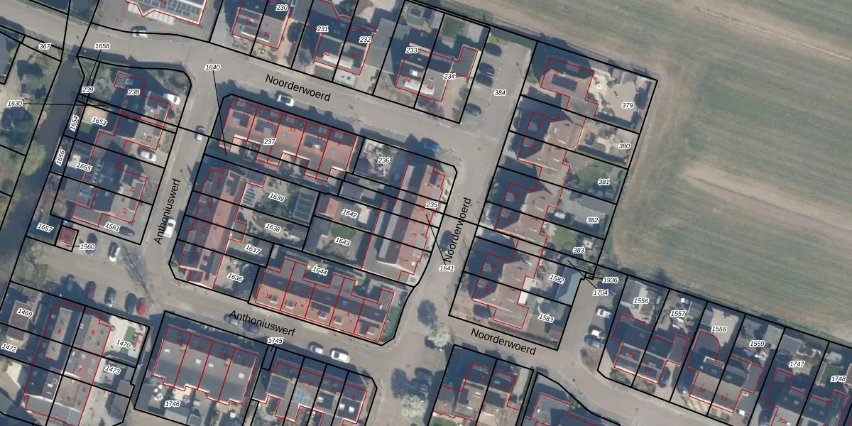 Het perceel waarop Noorderwoerd 5 staat heeft een oppervlakte van 92 m². Dit is een klein perceel. De perceeloppervlakte wordt geregistreerd door het Kadaster. Gedetailleerde informatie over de maten van dit perceel kunt u vinden in het rapport Kadastrale kaart met maatvoering van Noorderwoerd 5.