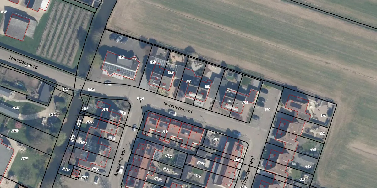Het perceel waarop Noorderwoerd 50 staat heeft een oppervlakte van 240 m². Dit is een middelgroot perceel. De perceeloppervlakte wordt geregistreerd door het Kadaster. Gedetailleerde informatie over de maten van dit perceel kunt u vinden in het rapport Kadastrale kaart met maatvoering van Noorderwoerd 50.