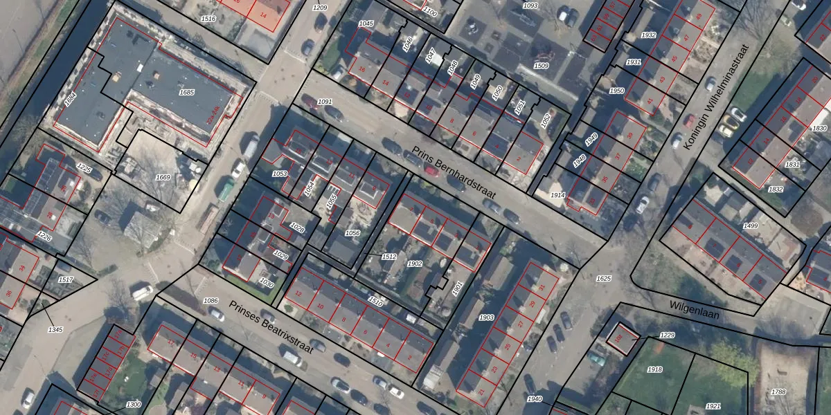 Het perceel waarop Prins Bernhardstraat 7 staat heeft een oppervlakte van 529 m². Dit is een groot perceel. De perceeloppervlakte wordt geregistreerd door het Kadaster. Gedetailleerde informatie over de maten van dit perceel kunt u vinden in het rapport Kadastrale kaart met maatvoering van Prins Bernhardstraat 7.