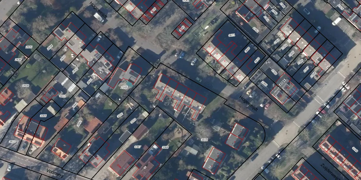 Het perceel waarop Hogeweijdt 5 staat heeft een oppervlakte van 2791 m². Dit is een zeer groot perceel. De perceeloppervlakte wordt geregistreerd door het Kadaster. Gedetailleerde informatie over de maten van dit perceel kunt u vinden in het rapport Kadastrale kaart met maatvoering van Hogeweijdt 5.