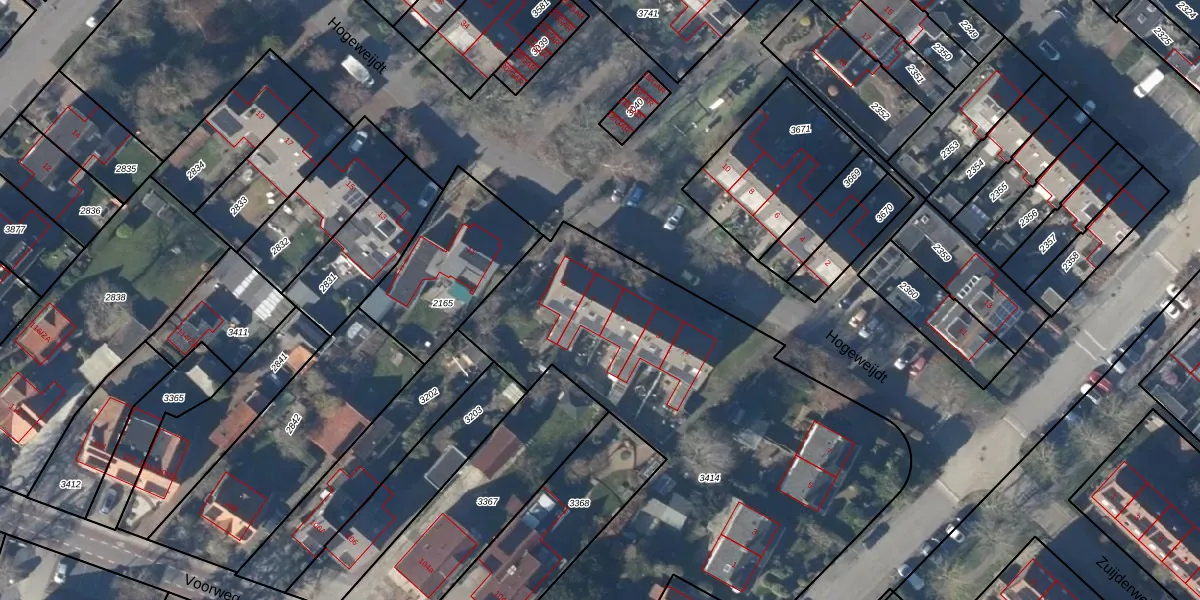 Het perceel waarop Hogeweijdt 7 staat heeft een oppervlakte van 2791 m². Dit is een zeer groot perceel. De perceeloppervlakte wordt geregistreerd door het Kadaster. Gedetailleerde informatie over de maten van dit perceel kunt u vinden in het rapport Kadastrale kaart met maatvoering van Hogeweijdt 7.