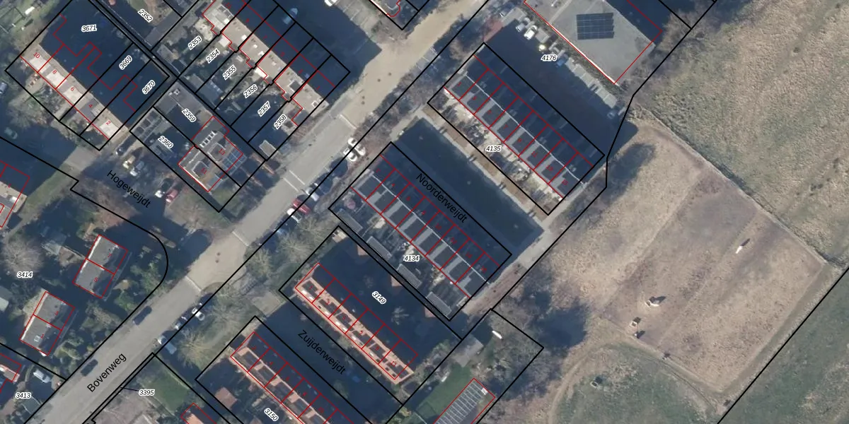 Het perceel waarop Noorderweijdt 8 staat heeft een oppervlakte van 834 m². Dit is een groot perceel. De perceeloppervlakte wordt geregistreerd door het Kadaster. Gedetailleerde informatie over de maten van dit perceel kunt u vinden in het rapport Kadastrale kaart met maatvoering van Noorderweijdt 8.
